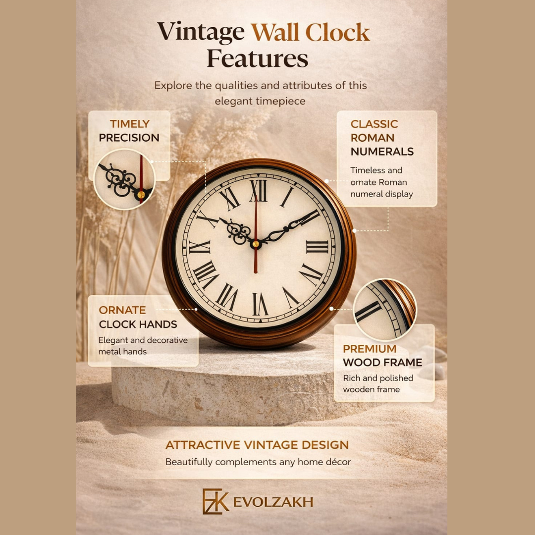 Evolzakh focuses on quality craftsmanship, elegant design, and dependable performance. This vintage wooden wall clock is more than a timepiece—it is a décor statement that enhances your interior while delivering reliable accuracy.