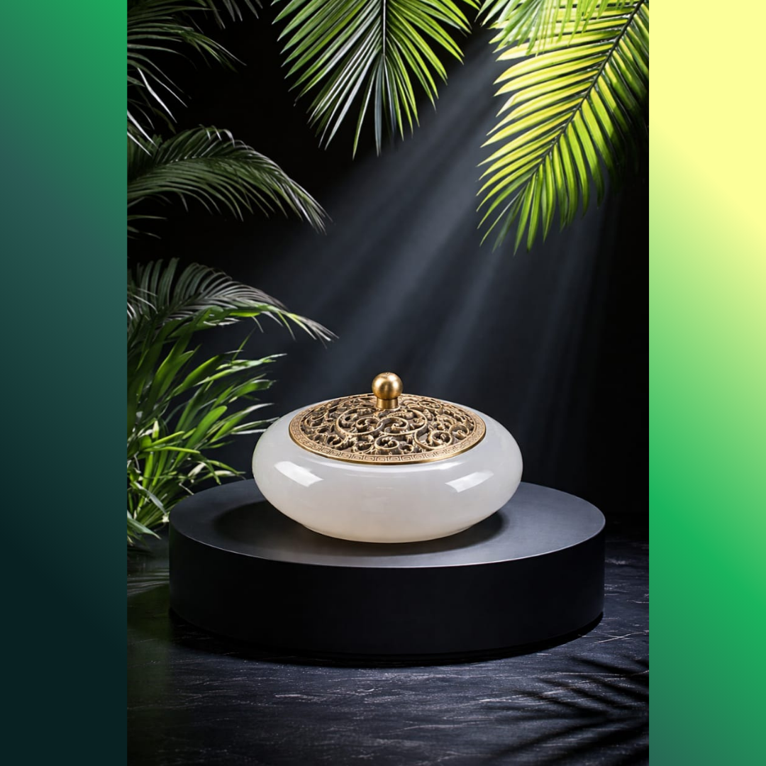 Be the first to review “Evolzakh Premium White Glazed Jade Incense Burner with Brass Lid”